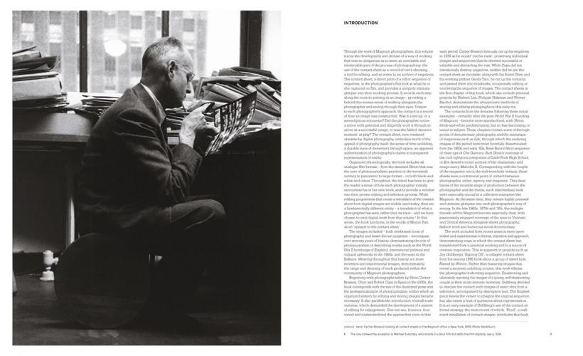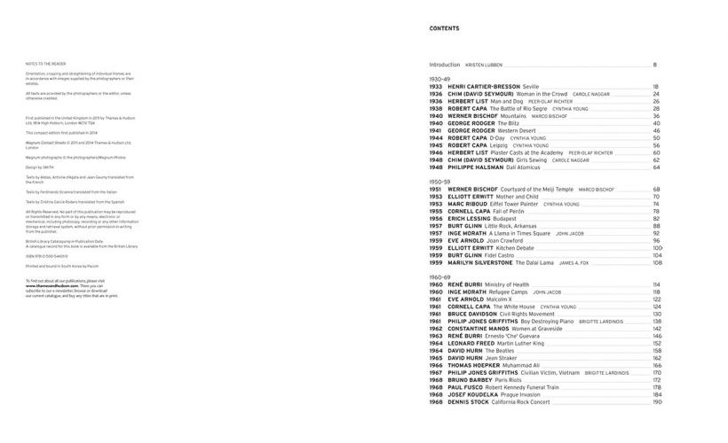 139 contact sheets, representing 69 photographers, are featured, as well as zoom-in details, selected photographs, press cards, notebooks and spreads from contemporary publications, including Life magazine and Picture Post. Further insight into each contact sheet is provided by texts written by the photographers themselves or by experts chosen by members' estates.