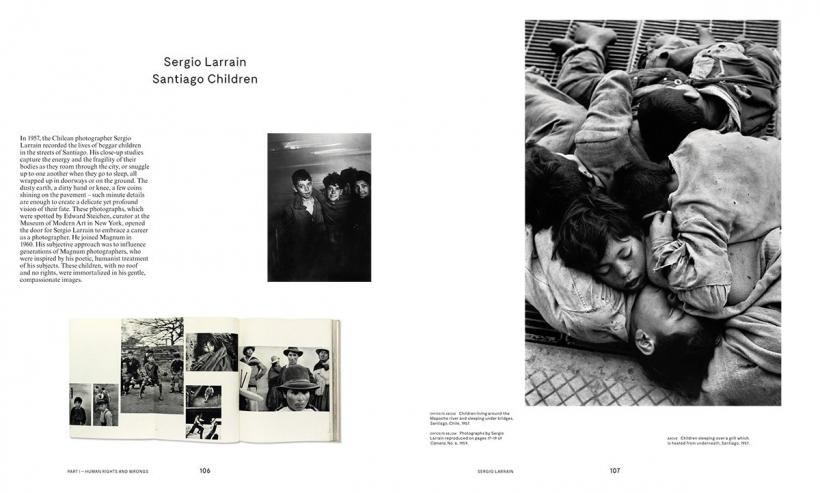 The book is organized into three main parts: Part I (1947–1968) views the Magnum archive through a humanist lens, focusing on post-war ideals of commonality and utopianism. Part II (1969–1989) shows a world fragmenting, with a focus on subcultures, minorities and outsiders. Part III (1990–2017) charts the ways in which Magnum photographers have captured – and continue to capture – a world in flux and under threat.