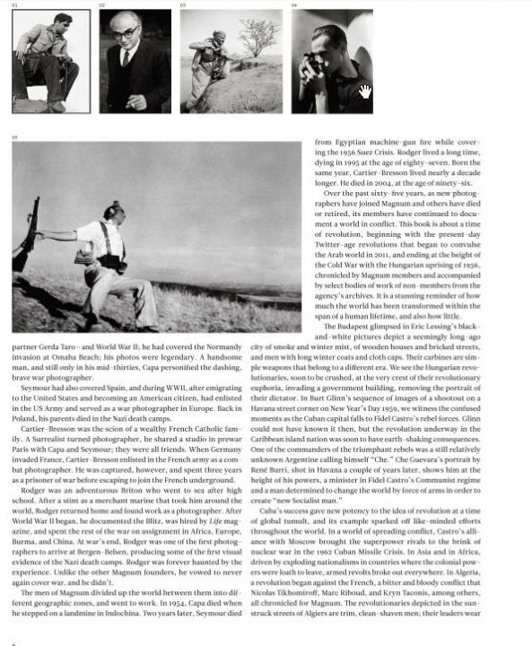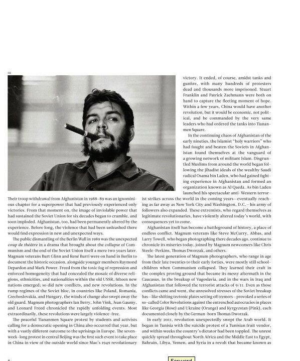 Culled from the archives of the prestigious 65-year-old photo agency Magnum founded by Henri Cartier Bresson, this collection of images from internationally renowned photographers is a compelling record of the recent decades of worldwide revolution.