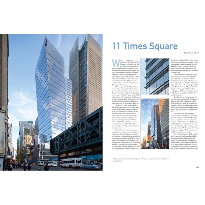 These wonderfully diverse additions to the city - the New York Times Building by Renzo Piano, the Standard Hotel by Polshek Partnership Architects, 7 World Trade Center by SOM, the Blue Tower by Bernard Tschumi, Bank of America Tower by Cook + Fox, 11 Times Square by FXFOWLE, 200 West Street by Pei Cobb Freed & Partners, and 425 Fifth Avenue by Michael Graves - give an indication of how the city continues to evolve in the twenty-first century.