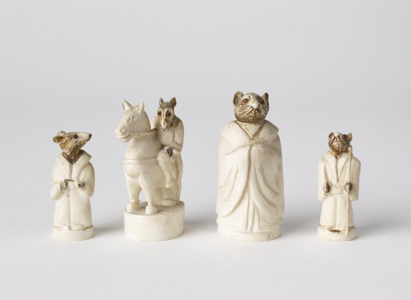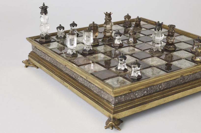 Though apparently offering a limited canvas – each set has 32 pieces, each board 64 squares – sets have nevertheless been designed in countless ways, using almost every imaginable material: from precious metals, to ivory and rock crystal. They have taken many forms, from figural to abstract, and used many diverse themes, from the historical and political to the beauty and variety of the animal kingdom.