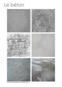 albâtre, béton, bois gougé, bronze, cristal de roche, écaille, galuchat, marqueterie de paille, mosaïque, nacre parchemin, verre…