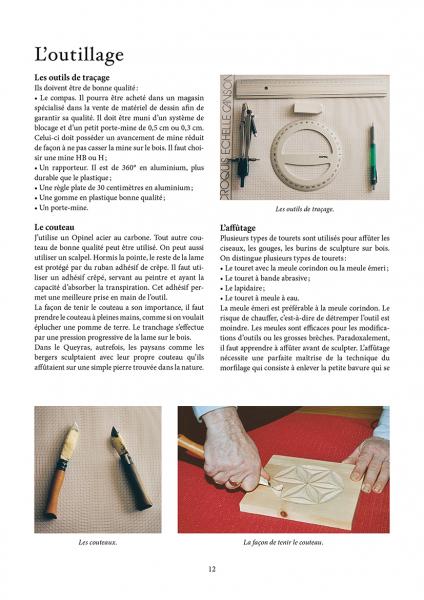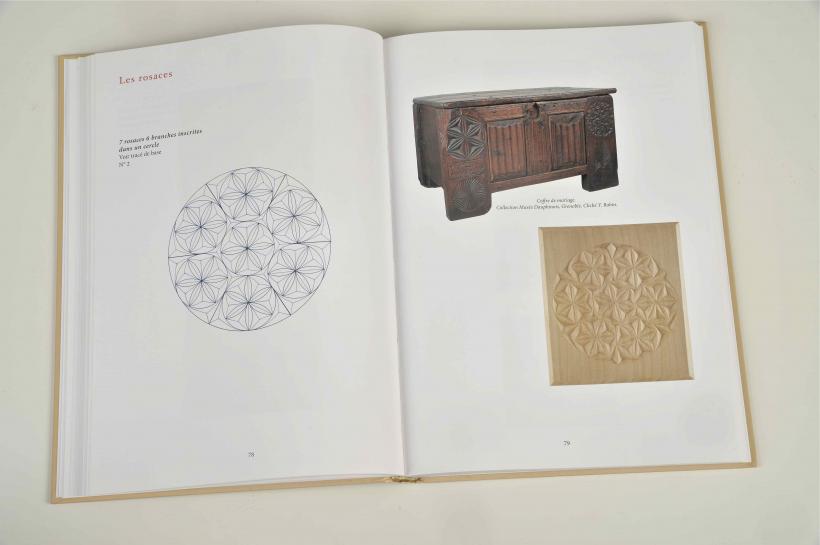 Les bases : bois, outillage, histoire de la rosace, motifs traditionnels, tracés de base, exemples d’art populaire.