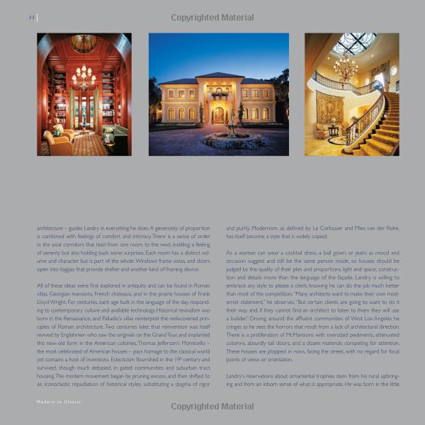 Modern to Classic is a rare jewel in the world of architectural monographs, welcoming the reader behind the gates of some of today’s most inspiring residential estates. Whether it is a contemporary compound, a French chateau, an Italian villa, an English manor or a Neo-classical estate, the internationally acclaimed architectural firm Landry Design Group has skillfully designed each project with an exquisite attention to detail and a keen understanding of their clients’ unique lifestyles.