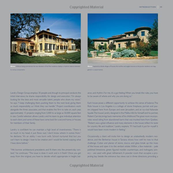 The firm’s ability to create within the influence of architectural precedents or to freely invent within contemporary parameters displays a unique talent that has attracted the attention of today’s movers and shakers, including such notable clients as Eddie Murphy, Kenny G, Rod Stewart, Sylvester Stallone, Sugar Ray Leonard, Keyshawn Johnson and Wayne Gretzky. Graced with a foreword by Paul Goldberger, an introduction by Michael Webb and an enlightening essay by Richard Landry, over 350 inspiring color photographs and beautifully rendered drawings convey the unparalleled versatility and the inspired vision of Landry Design Group.