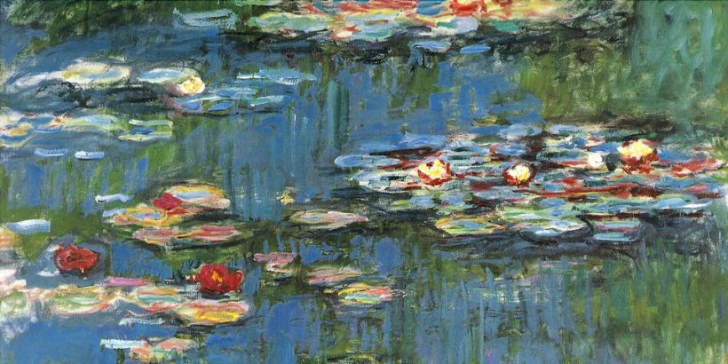 In his endeavor to capture the ever-changing face of reality, Monet went beyond Impressionism and thereby beyond the confines of self-contained panel painting: in Giverny he painted the Poplars, Grain Stacks and Rouen Cathedral series in which he addressed one motif in constantly new variations. Here, too, Monet laid out the famous garden with its water-lily pond which he was to paint on huge canvases well into the 1920s. He thereby sought to render not reality as objectively experienced, but rather that which takes place "between the motif and the artist." In their open, merely tenuously representational structure and impressive scale, Monet’s water lily paintings — created long before the currents of the contemporary avant-garde — point the way to the developments of the future.