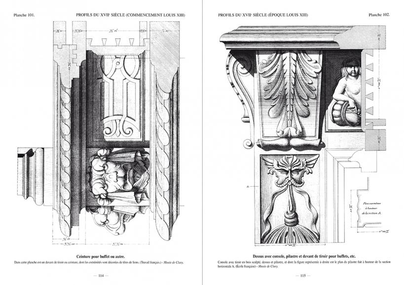 Alors que les amateurs éclairés et les artisans savent bien reconnaître les principaux styles, la plupart sont prompts à mélanger les moulurations et à orner un meuble Louis XIII d’un profil Louis XVI. Le livre de Léon Jamin (auteur des 3 tomes composant le célèbre « Enseignement professionnel du menuisier ») permet de ne plus commettre de tels barbarismes.