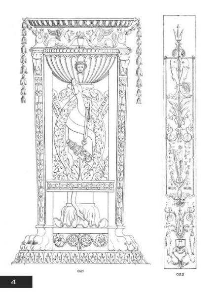Based on popular motifs of ancient Greece and Rome, Neo-Classical design dominated European architecture and decorative styles from the late 1700s onward. This collection of elegant clip art features scenes from mythological, historical, and biblical sources as well as vines and leaves, floral elements, real and legendary beasts, and geometric patterns.