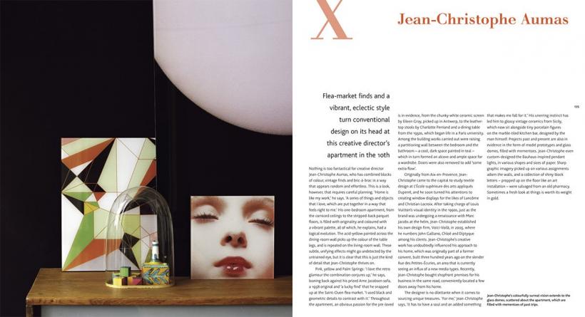 Homes include those of creative director Jean-Christophe Aumas, interior designers Pierre Yovanovitch and Florence Baudoux, fashion designer Corrado de Biase, jewelry designer Martha Bedoya, antiques dealer Florence Lopez, product designers Ora-Ïto and Victoria Wilmotte, illustrator Jean-Philippe Delhomme and actor and singer Marc Lavoine.