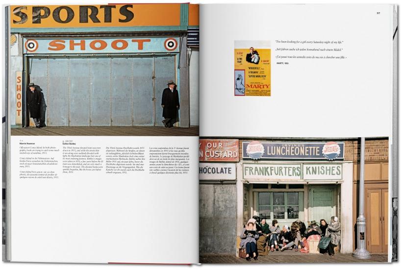 Features hundreds of iconic images, sourced from dozens of archives and private collections — many never before published — and the work of over 150 celebrated photographers, including: Victor Prevost, Jacob Riis, Lewis Hine, Alfred Stieglitz, Paul Strand, Berenice Abbott, Walker Evans, Weegee, Margaret Bourke-White, Saul Leiter, Esther Bubley, Arnold Newman, William Claxton, Ralph Gibson, Ryan McGinley, Mitch Epstein, Steve Schapiro, Marvin Newman, Allen Ginsberg, Joel Meyerowitz, Andreas Feininger, Charles Cushman, Joseph Rodriguez, Garry Winogrand, Larry Fink, Jamel Shabazz, Allan Tannenbaum, Bruce Davidson, Helen Levitt, Eugene de Salignac, Ruth Orkin, Joel Sternfeld, Keizo Kitajima, and many many more.