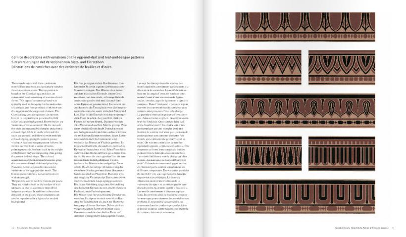 This way, these ornaments found their way into tapestry designs, carpets and upholstery fabrics. Ornaments is not restricted to a mere reproduction of the original designs, though; it also provides commentary based on the original annotations of the Audsleys and describes the background of ornament from a perspective of the history of style and cultural studies, from Ancient Greece to the Middle Ages, from the Renaissance to classicism, from Japanese style to floral style. The book is completed by detailed instructions on how to copy the ornaments.