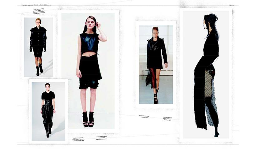 100 designers: Acne, Joseph Altuzarra, J.W. Anderson, Rachel Antonoff, Graeme Armour, Jordan Askill, Band of Outsiders, Umit Benan, Eddie Borgo, Natalia Brilli, Thom Browne, Sarah Burton, Andrea Cammarosano, Maria Grazia Chiuri & Pierpaolo Piccioli, Complex Geometries, Creatures of the Wind, Cushnie et Ochs, Damir Doma, Phoebe English, Erdem, Patrick Ervell, Mark Fast, Fleet Ilya, Nicola Formichetti, Holly Fulton, Josh Goot, Patrick Grant, Louise Gray, Hakaan, Michael van der Ham, Qiu Hao, Maarten van der Horst, Guillaume Henry, Iris van Herpen, Rad Hourani, Roksanda Illincic, Juun J, Dominic Jones, Kim Jones, Christopher Kane, Mary Katrantzou, Adam Kimmel, Nicholas Kirkwood, David Koma, Romain Kremer, Jeremy Laing, Craig Lawrence, Dion Lee, Joseph Li, Yang Li, Phillip Lim, James Long, Pedro Lourenco, Pamela Love, Lena Lumelsky, Mareunrol’s, Marques Almeida, Nasir Mazhar, Meadham Kirchhoff, Emilio de la Morena, Lucas Nascimento, Richard Nicoll, Ohne Titel, Lucas Ossendrijver, Niels Peeraer, Peter Pilotto, Gareth Pugh, Fausto Puglisi, Christopher Raeburn, Gaia Repossi, Risto, Simone Rocha, Romance was Born, Gianvito Rossi, Olivier Rousteing, Flaminia Saccucci, Shaun Samson, Tex Saverio, Marios Schwab, Christopher Shannon, Sibling, Tabitha Simmons, CC Skye, Noel Stewart, Suno, Thomas Tait, Heaven Tanudiredja, Noritaka Tatehana, Ek Thongprasert, Aitor Throup, Erika Trotzig, Anthony Vaccarello, Alexander Wang, Uma Wang, Sharon Wauchob, Jason Wu, Yiqing Yin, Yokoo, Huishan Zhang, Xander Zhou