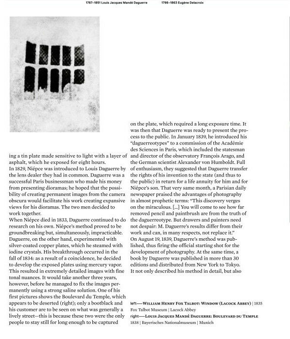Chronologically arranged, each chapter focuses on a particular work or idea that changed the course of photography. Presented in beautiful spreads and with informative text, the book opens with photography’s genesis in the form of the camera obscura. Centuries later, Daguerre, Niepce, and Talbot invented their own means of capturing light on paper. The book covers groundbreaking genres such as still life, landscape, portraiture, and nudes. Sections on the role of photography in journalism illustrate how the camera’s presence on battlefields, on city streets, and in factories helped inform and reform the modern world. Fashion, animals, Surrealism, and staged portraits are also explored. Perfect for perusing or reading from cover to cover, this book illustrates how photography developed from a concept to a world-changing force — one that attempted to shed light on truth yet can also obscure and alter reality in dazzling ways.