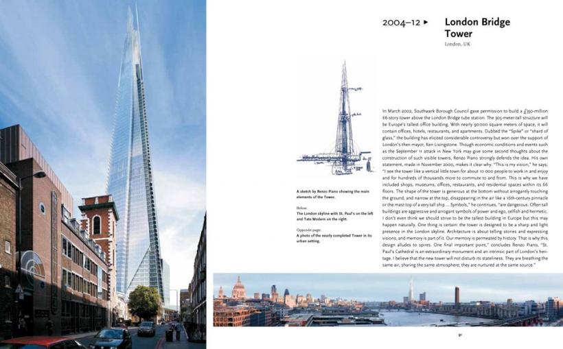 "The array of buildings by Renzo Piano is staggering in scope and comprehensive in the diversity of scale, material, and form. He is truly an architect whose sensibilities represent the widest range of this and earlier centuries." Such was the description of Renzo Piano given by the Pritzker Prize jury citation as they bestowed the prestigious award on him in 1998. Whereas some architects have a signature style, what sets Piano apart is that he seeks simply to apply a coherent set of ideas to new projects in extraordinarily different ways. "One of the great beauties of architecture is that each time, it is like life starting all over again," Piano says. "Like a movie director doing a love story, a Western, or a murder mystery, a new world confronts an architect with each project." This explains why it takes more than a superficial glance to recognize Piano’s fingerprints on such varied projects as the Pompidou Center in Paris, the Kansai Airport in Osaka, Japan, the Tjibaou Cultural Center in Nouméa, New Caledonia, the Zentrum Paul Klee in Bern, Switzerland, The New York Times Building in New York, and his most recent structure, the London Bridge Tower, which will be upon completion the tallest building in Western Europe.