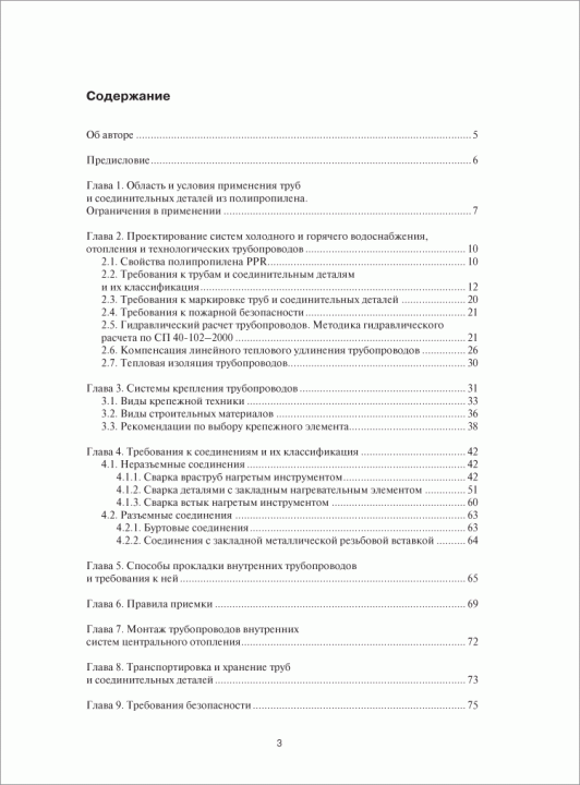 В книге "Полипропиленовые напорные трубопроводы в инженерных системах зданий" впервые в отечественной практике обобщены сведения о свойствах труб из полипропилена, нормативно-методической базе применения напорных трубопроводов в санитарно-технических и технологических системах, сортаменте труб и соединительных деталей, о видах и способах соединения труб.