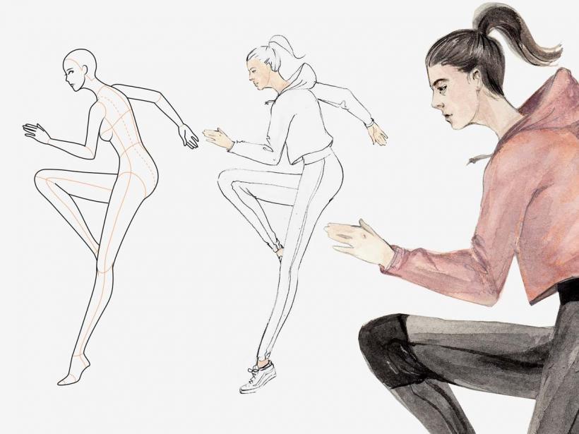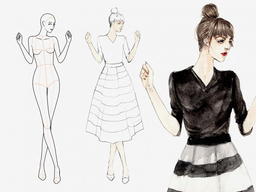 The guidebook includes detailed step by step demonstrations of fashion sketching, beautifully drawn by fashion illustrator Connie Lim.