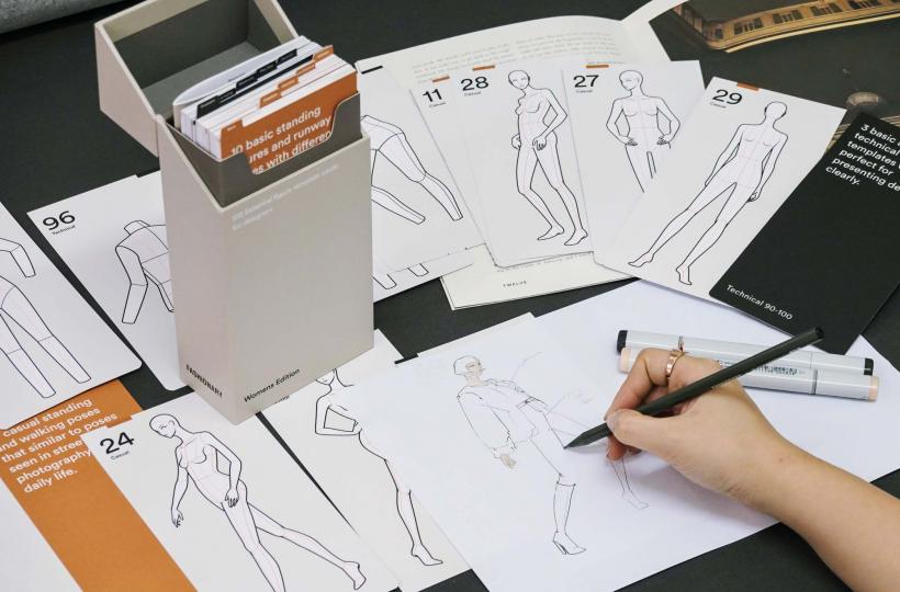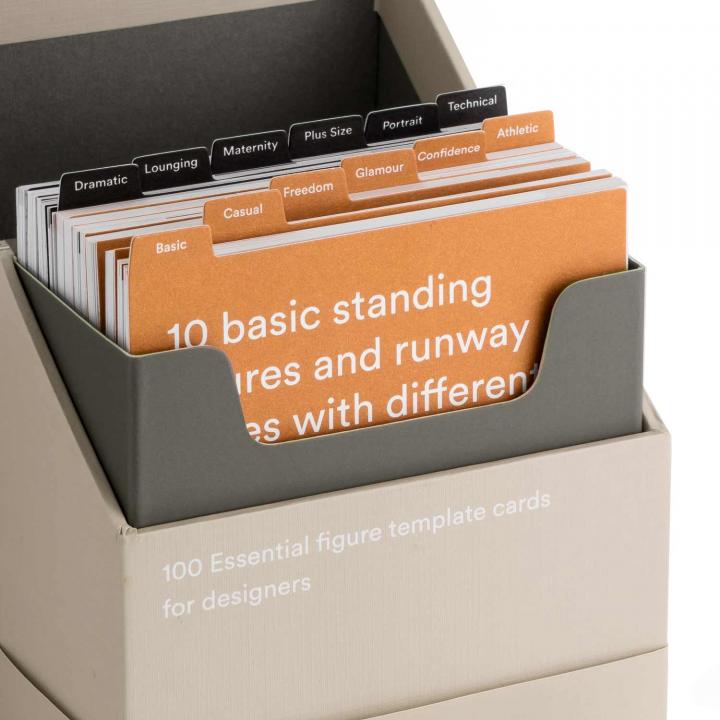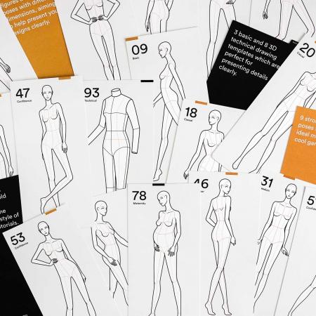 Fashionary has seen the stiff, impractical fashion templates available, and come up with a modern alternative. Their set of 100 pose cards are accurately proportioned, with practical poses that cover basic style to couture to sportswear – even including a built-in filing system to accommodate the busy fashion professional.