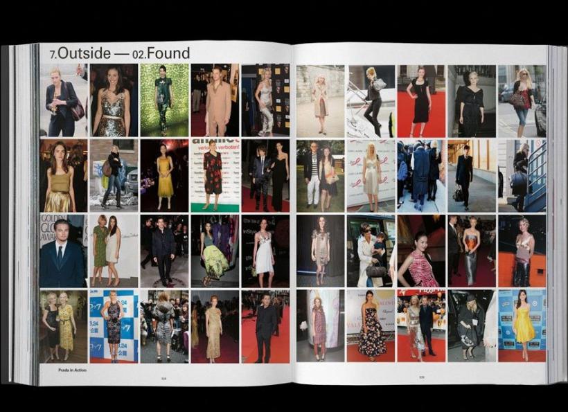 Among the many features of this rich innovative book with its thousands of images are a photo-essay by renowned photographer Brigitte Lacombe, stills taken from short films documenting the craftsmanship of the factory, images of the unique fashion show environments, an overview of all Miuccia Prada's collections with thumbnail pictures of 3,885 different “looks,” collages of the most influential shoe and bags, photographs of the final product on the runway, celebrated store designs in New York and Los Angeles by Rem Koolhaas/OMA and in Tokyo by Swiss architects Herzog & de Meuron, a film collaboration with director Ridley Scott, Koolhaas’s radical “Prada Transformer” pavilion in Seoul, costume designs for a Japanese manga heroine, Prada found on the street and celebrities photographed on the red carpet, and blogs expressing the almost fanatical devotion of lovers of the brand.