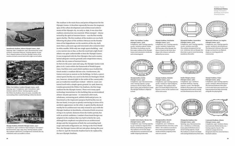 Посібник із проектування стадіонів розкриває основні параметри створення успішних арен, дає детальний історичний огляд цієї типології та аналізує сучасні об'єкти.