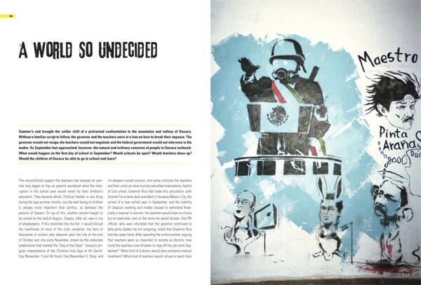 Commentary and analysis from journalists and the acclaimed songstress (and Oaxaca native) Lila Downs establish the context for the photographs shot by Sendyk, which depict the messages of struggle, revolt and empowerment.