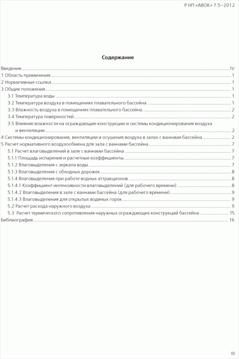 Рекомендации «Обеспечение микроклимата и энергосбережение в крытых плавательных бассейнах. Нормы проектирования» содержат расчеты влаговыделений в залах с ваннами бассейнов, расхода наружного воздуха, термического сопротивления наружных ограждающих конструкций бассейна, а также примеры расчета систем кондиционирования, вентиляции и осушения воздуха для плавательных бассейнов различных типов.