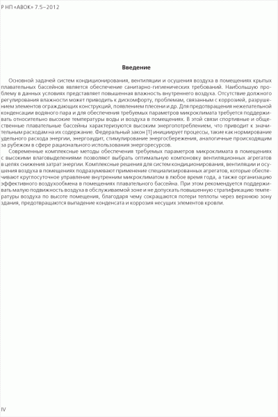 Рекомендации АВОК 7.5-2012 «Обеспечение микроклимата и энергосбережение в крытых плавательных бассейнах. Нормы проектирования»