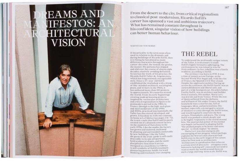 This monograph explores his revolutionary approach by profiling his greatest projects like La Fábrica, Walden 7, La Muralla Roja or Abraxas. Spectacular new photography by Salva López, texts by experts like Nacho Alegre and Douglas Murphy as well as by Bofill himself are complemented with sketches and floor plans. Bofill’s fantastic creations satisfy a longing for originality, personality and progressive ideals.