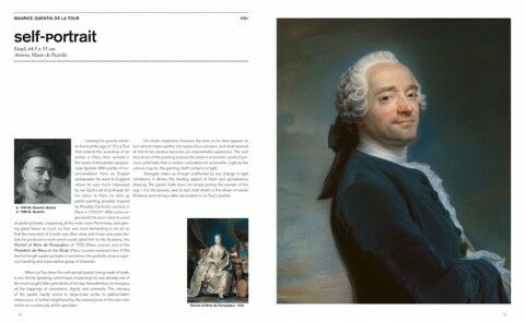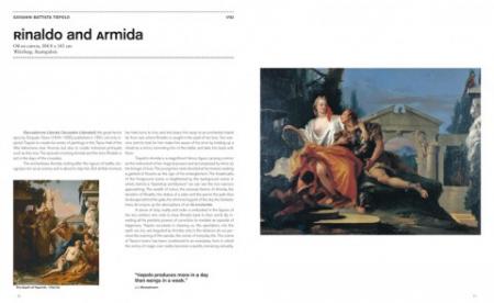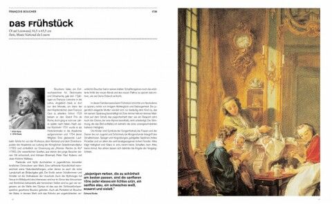 * a selection of the most important works of the epoch; each is presented on a 2-page spread with a full-page image and, on the facing page, a description/interpretation of the work and brief biography of the artist as well as additional information such as a reference work, portrait of the artist, and/or citations