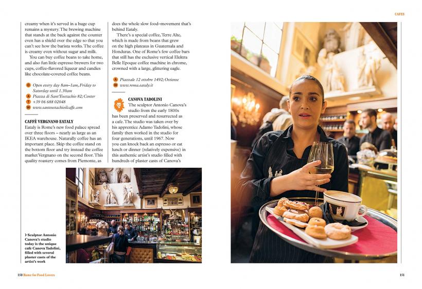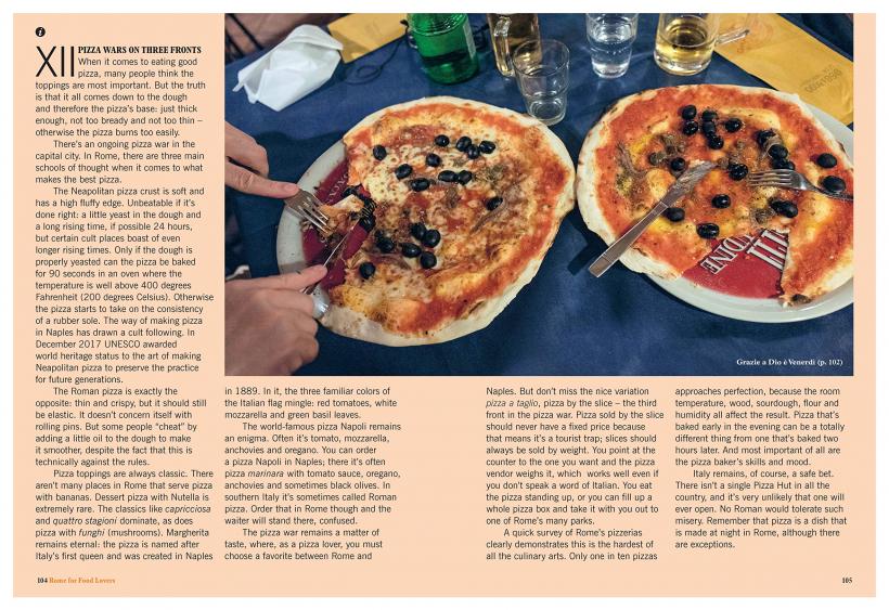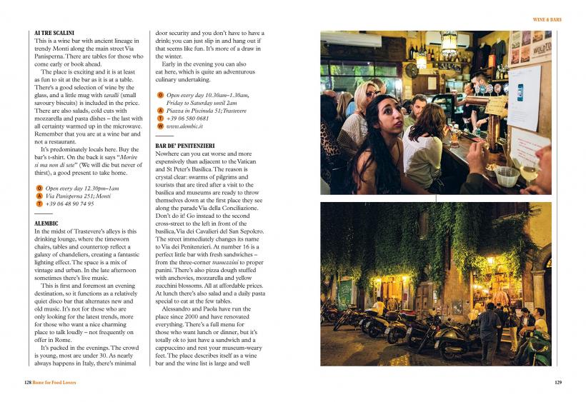 Chapters are organised by the different types of Italian food restaurants, from trattorias, pizzerias, gelaterias, delis and beyond, and give you the history behind the tradition, like the ongoing pizza wars in Rome, why Italians are not fatter and what might be hiding in a true Roman belly.