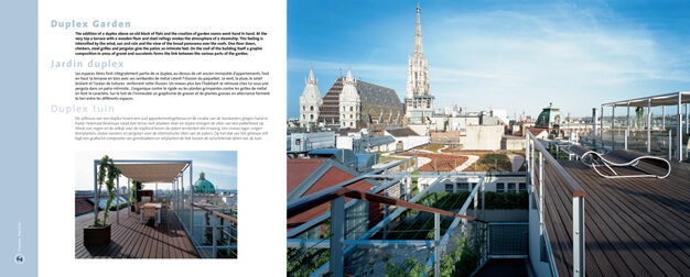 Roof gardens are enjoying a revival. Landscape architects are now being followed by architects, project developers and owners of roof terraces in discovering the advantages of plants on the roof. In each of these locations, designers took up the challenge of the building, the urban environment above the roof-line or the landscape. Each spot is so different that it had to look for a new definition of the roof garden or roof terrace. They have come up with new architectural concepts using water, stone, wood, metal, glass, trees, plants and grass, created new green spaces or achieved astonishing effects up on the roof.