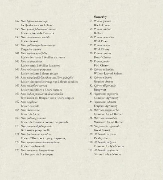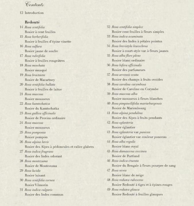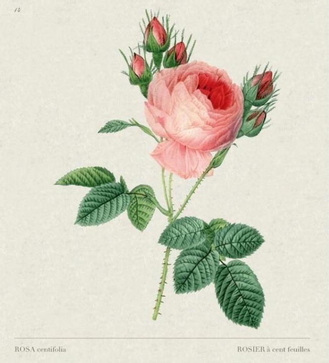 The beautiful rose plates featured within are original reproductions of drawings which came to life in England’s Kew Gardens, the Gardens of Versailles, and at the Château de Malmaison, the residence of Napoleon’s first wife. Each plate is artfully reproduced from the extraordinarily images found in Redouté’s Les Roses (1817-21) and Sowerby’s English Botany (1780-1814). A comprehensive index at the back of the book uses the artists’ original language to describe the intricacies of the rose colors, their velvety textures, and their intoxicating scents.