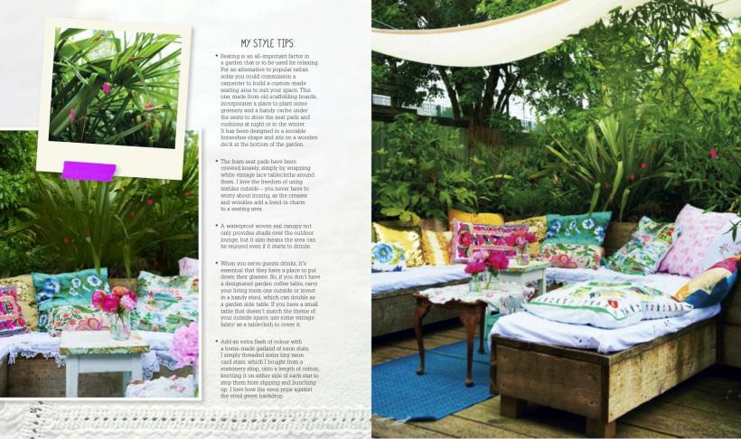 Selina starts by showcasing her Outside Inspirations in the form of flowers, lighting, fabrics, furniture and decorations. She then focuses on beautifying every aspect of outdoor living, providing ample inspiration and practical suggestions for transforming a garden, deck, terrace or even just a balcony into a lush outdoor room that’s perfect for lounging, relaxing and entertaining. Selina also goes further afield, with dozens of ideas for simple yet stylish picnics, BBQs and summer fetes. Parties are also covered, with inspiring suggestions for weddings, barn dances and other celebrations. Throughout, imaginative ‘DIY ideas’, insightful ‘Style Tips’ and ‘Selina Loves...’ sections are full of inspiring suggestions for how to recreate the look at home.