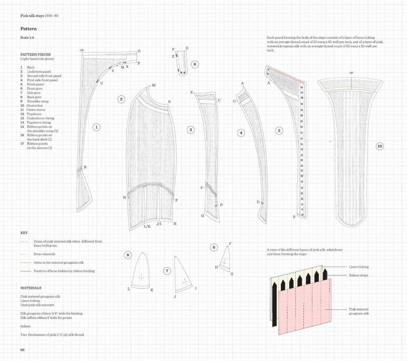 Book Two in the V&A's groundbreaking series presents 17 patterns for garments and accessories from a seventeenth-century woman's wardrobe. It includes patterns for a loose gown, a jacket, a pair of stays and a boned bodice, ivory and wooden busks, shoes, a hat, a stomacher, linen bands and supporters, a bag and a knife case. It also features a description of the stay-making process. Full step-by-step drawings of the construction sequence are given for each garment to enable the reader to accurately reconstruct them. There are scale patterns and diagrams for making linen and metal thread laces and embroidery designs. Multiple photographs of the objects, close-up construction details and X-ray photography reveal the hidden elements of the clothes, the precise number of layers and the stitches used inside.