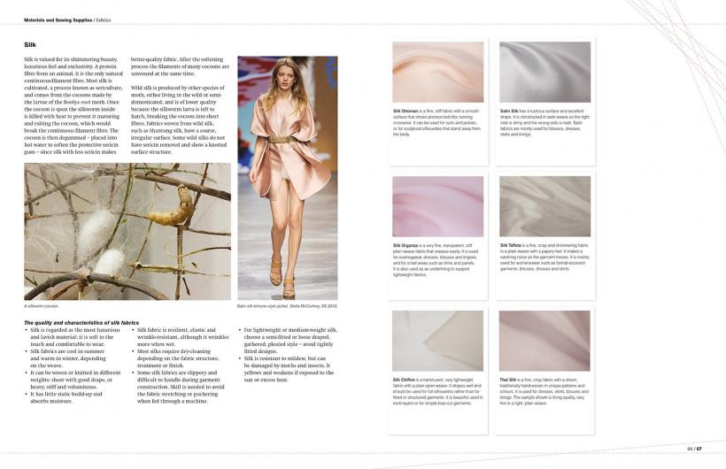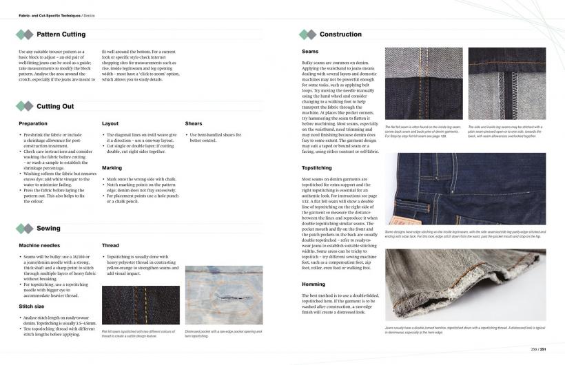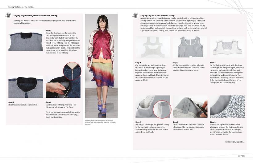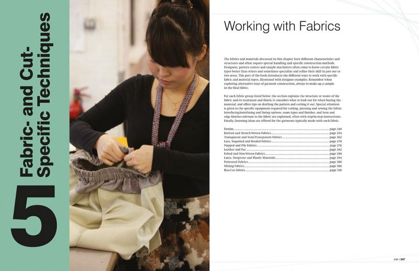 Chapter One introduces sewing tools and machinery (including industrial machines). It discusses how to work with patterns and explains cutting-out methods. Chapter Two is devoted to different fabrics and how they work, focusing on the construction of a garment, including fastenings and trimmings, and the use of materials to support structured pieces, such as corsets. Hand-sewing techniques and basic seams are explored in Chapter Three. Techniques are demonstrated with step-by-step photographic guides combined with technical drawings. A guide to making garment details and decorations, such as pockets, waistlines, and necklines, is found in Chapter Four. Chapter Five addresses fabric-specific techniques, for everything from lace to neoprene. The best technical approaches to use for patternmaking and construction are discussed for each fabric. Catwalk images demonstrate how these kinds of techniques are employed by designers.