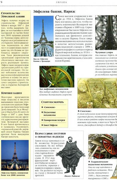 В этой книге собраны шедевры мировой архитектуры от Стоунхенджа до статуи Свободы. Откройте мир прекраснейших зданий, великолепных интерьеров и рукотворных чудес с древнейших времен до наших дней. Вы узнаете все о величайших сооружениях во многих странах - от храмов и дворцов до замков и небоскребов. Узнайте больше об истории, архитектурных стилях, знаменитых людях и важных событиях, связанных с каждым объектом. Благодаря прекрасным трехмерным рисункам и фотографиям вы сможете насладиться великолепными интерьерами каждого памятника архитектуры.