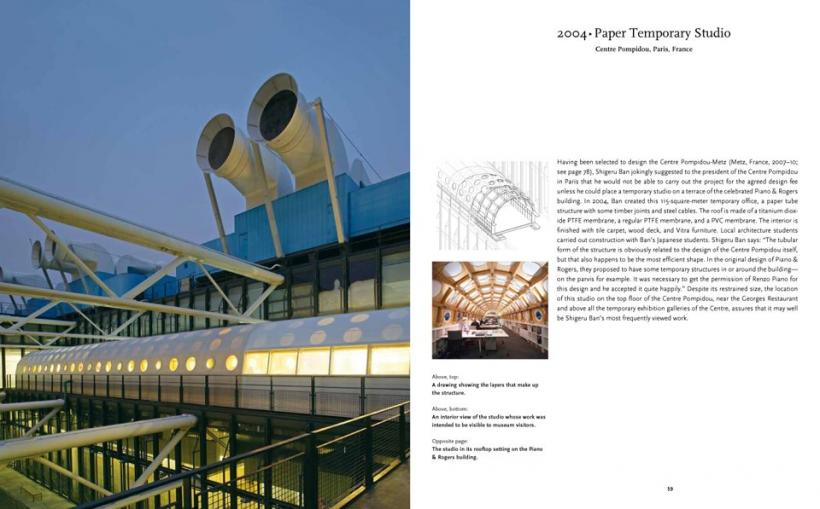 Famed Japanese architect Shigeru Ban attended SCI-Arc in California and earned his degree at the Cooper Union School of Architecture in New York. With offices in Tokyo and Paris, Ban consistently challenges accepted notions of architecture, designing a house without walls, or an exhibition space made from paper tubes and shipping containers. This survey traces his entire career to date, showing clearly why he is one of the world’s most innovative and significant architects. Unlike many of his peers, Ban can create remarkable residences and still find time to design emergency relief housing for disaster areas from Kobe to New Orleans. Often using paper or cardboard tubes as a structural element, his designs give new meaning to the term "Paper Architect." His major completed works include the Furniture House at Lake Yamanaka, Japan, the Curtain Wall House in Tokyo, the Naked House in Kawagoe, Japan, the Japanese Pavilion at Hannover Expo 2000, the mobile Nomadic Museum, and his most recent masterpiece, the Centre Pompidou-Metz in France.