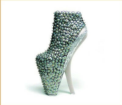 Exotic shoes have been around for centuries. Sandals made of solid gold were found in the royal tombs of ancient Egypt. Six hundred years ago, women teetered around Venice in chopines with platforms up to a foot high. And in China, tiny golden lotus shoes were brightly colored and elaborately embroidered. In the twentieth century, Salvatore Ferragamo introduced platform shoes and “invisible” sandals. Beth Levine invented sprint-o-lator mules and topless shoes held to the sole by adhesive. Roger Vivier created the concave stiletto and comma heels for his extravagantly bejeweled concoctions. The last two decades have seen an explosion of creativity in footwear design. Sexy laced-up sandals, sky-high platform heels, and outrageously decorated shoes are seen on fashionable women everywhere, from the catwalk to the street. In Shoegasm, you’ll find page after page of fabulous footwear from fashion icons such as Christian Louboutin, Manolo Blahnik, Vivienne Westwood, and Alexander McQueen, as well as exciting young designers like Nicholas Kirkwood, Charlotte Olympia, and collaborators Rem D. Koohhaas and Galahad Clark. You’ll also see shoes that are truly wearable art from innovators like Kobi Levi, Julian Hakes, and Marloes Ten Bhomer.