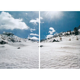 Whenever Gerhard Richter goes to Sils (Switzerland), he always takes photographs, some of which he paints and adds to his Atlas . Others he considers independent works of art, and has included them in projects such as the exhibition "Nietzsche Hau in Sils". In his painted images, a photographed reality is combined with the effects of painting. In these painted photographs, the different levels of reality in the photography interact with others from the painting. The realism (as a photographic representation) and the abstraction (as a painting which is not figurative), show themselves to be redundant when the inherent categories of the created image dissolve into one.
