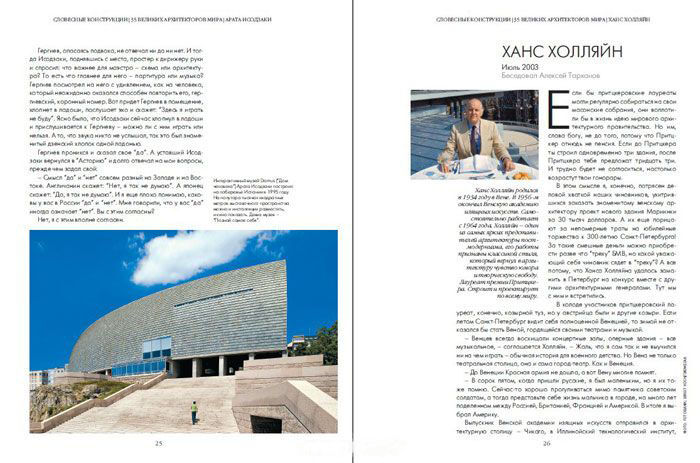 В сборнике "Словесные конструкции. 35 великих архитекторов мира" собраны лучшие из этих интервью.