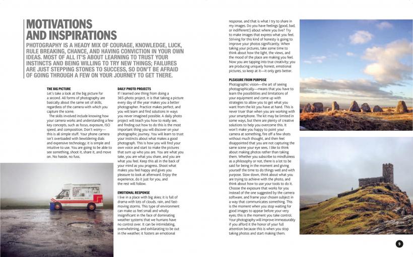 Covering simple techniques that will allow you to get the image that you see every single time, you will soon be telling your camera what to do with confidence. Start with The Big Picture and get to know your camera phone and the rules behind taking the perfect shot. The next chapter, Taking Great Pictures, explains the key disciplines of photography – portrait, abstraction, macro, still life and plenty more. Finally, the Post-production chapter demonstrates how to use apps to edit and enhance your images and create incredible prints for display.