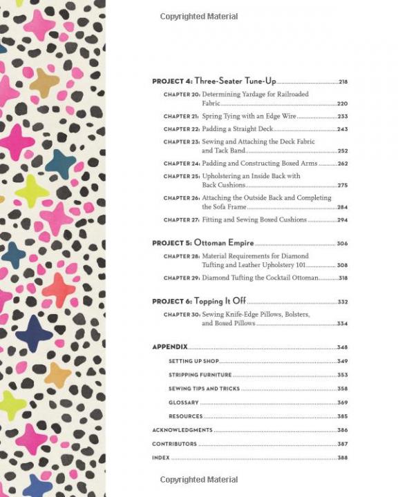 This is the only book you’ll need to learn the craft and art of upholstery from start to finish. With clear instructions illustrated by more than 900 step-by-step photographs, the five projects included here are designed to teach all of the techniques and skills you need to reupholster any piece of furniture to suit your own taste and style.