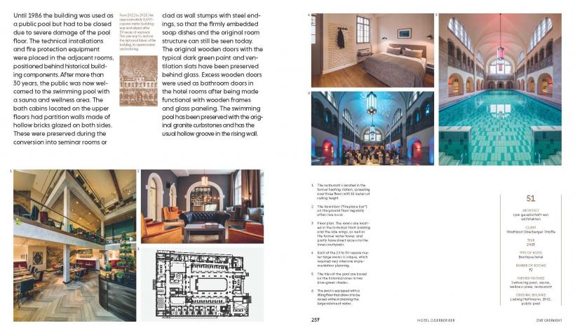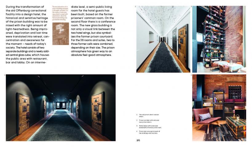 Converting abandoned buildings into cutting-edge hospitality destinations is a great way to offer guests authentic experiences and creative solutions. Some of today’s most dynamic, architecturally intriguing hotels are adaptive reuse projects showing that almost any building type can be turned into a temporary living space – from breweries to churches, from banks to offices, from castles to factories. The careful and respectful handling of the inherited substance and structure is as important as its creative extension. Whether through striking contrast, reinterpretation, or indeed both together, all featured projects are defined by an enthralling relationship between the old and the new.