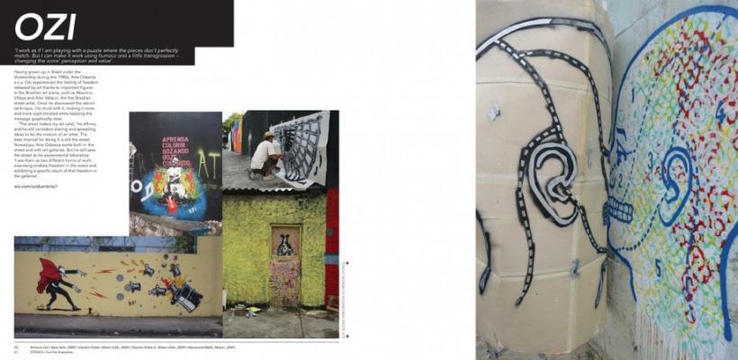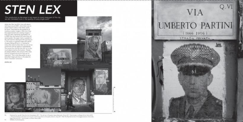 Each artist has created an in-situ photograph to accompany their stencil, showing how they would use it, along with other imagery. There is also a short interview with each artist.