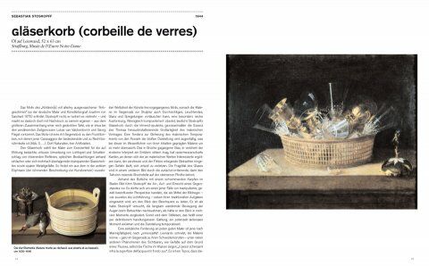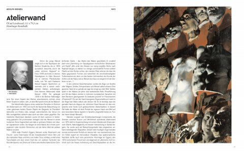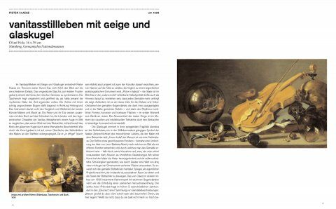 * a selection of the most important works of the epoch; each is presented on a 2-page spread with a full-page image and, on the facing page, a description/interpretation of the work and brief biography of the artist as well as additional information such as a reference work, portrait of the artist, and/or citations