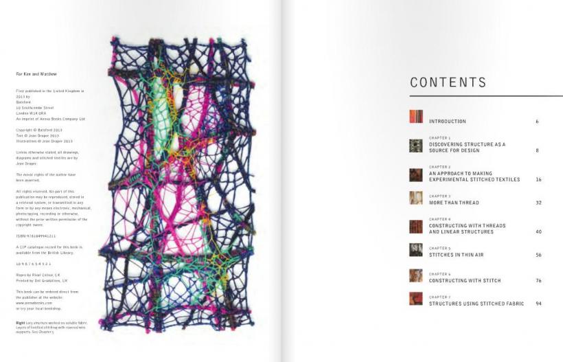 This beautiful but very practical book includes diagrams, detailed drawings and stitch information to guide the reader through the techniques, which include hand and machine embroidery. It covers Design, including recording information for translation into stitch (with lots of drawing tips); Choice of Threads, including some unusual threads and costumizing them; Constructing with Thread, everything from knotted forms, with decorative threads, grids and stacks, and coiled structures; Stitches in Thin Air, constructing with stitch alone using moulds and soluble fabric; Using Mixed Media in Stitched Structures, such as paper, sticks, wire and plastics; Adding Structure to an Existing Fabric; Three- Dimensional Fabric Structures.