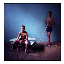 Chelbin’s most frequent subjects are children and adolescents, yet her work encompasses a mix of generations. As Leah Ollman notes, “The atmosphere falls somewhere between public and private. There’s a slight titillation of having personal access to performers who, typically, are experienced only remotely. Most immediate, though, are the visual contrasts between young and old, large and small, innocence and experience.”