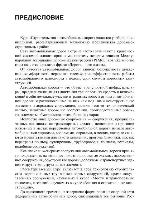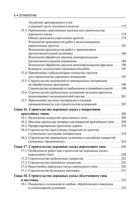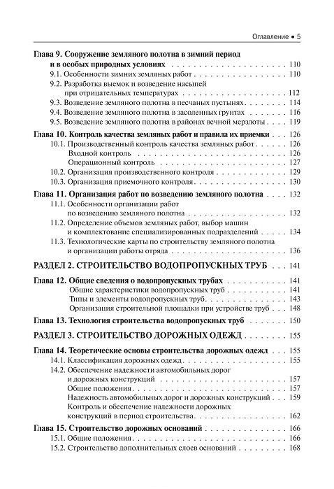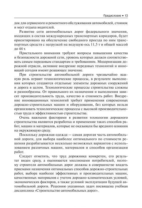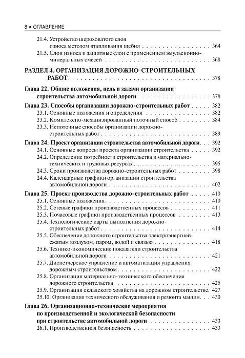 Представлены необходимые для студентов сведения, касающиеся организации работ и технологии строительства всех элементов современной автомобильной дороги, включая земляное полотно, водопропускные трубы, дорожную одежду. Отмечены характерные особенности работы каждого элемента дороги и научно обоснованы технологические приемы строительства. Рассмотрены вопросы организации работы производственных предприятий в условиях линейного дорожного строительства. Содержит передовые технологии и инженерные решения, нашедшие практическое применение в отечественной и мировой практике за последние 20 лет. Серьезное внимание уделено современным скоростным методам строительства, экологии, методам контроля качества.