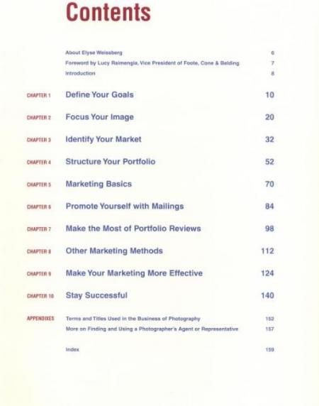 There's much more to being a professional photographer than simply taking great pictures. Today's self-employed photographers' must-have marketing savvy to spare. This guide from an industry insider provides that and much more. In "Successful Self-Promotion Strategies For Photographers", freelance photographers learn what they must do to improve their skills after the pictures have been developed. Featuring sections such as "Focus Your Image", "Sharpen Your Client Focus", "Identify Your Market" and the ever-important "Spot Trends", here are dozens of sure-fire strategies for selling services, staying on top of the latest market trends, and winning enough high-paying work to survive and thrive in this very competitive business. For any photographer looking to make it big behind the lens, this reference shows how to get the right exposure every time.