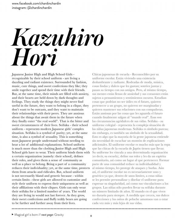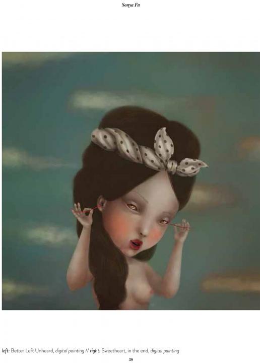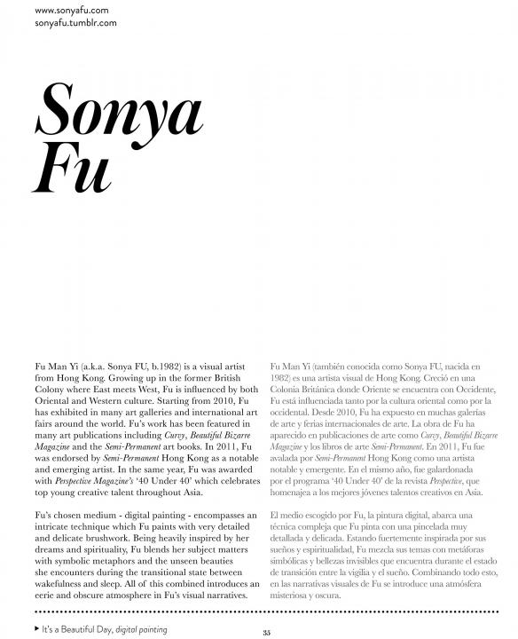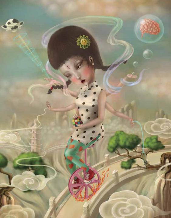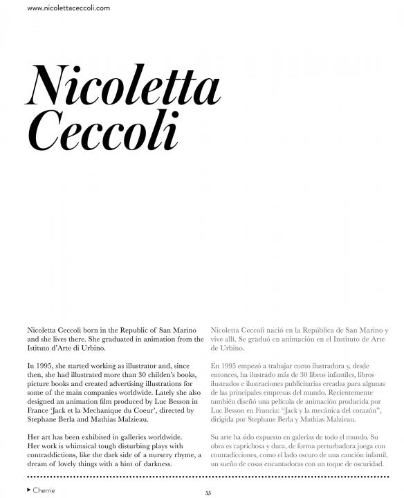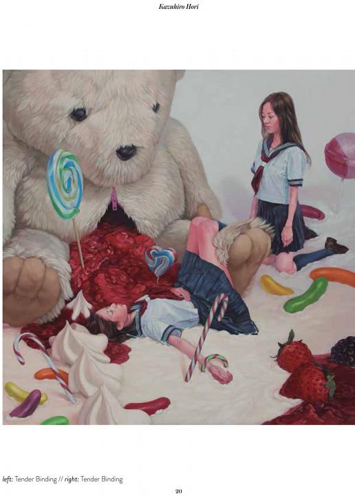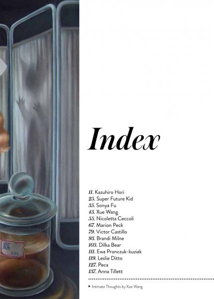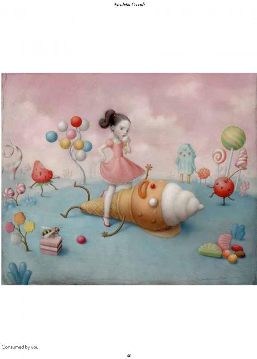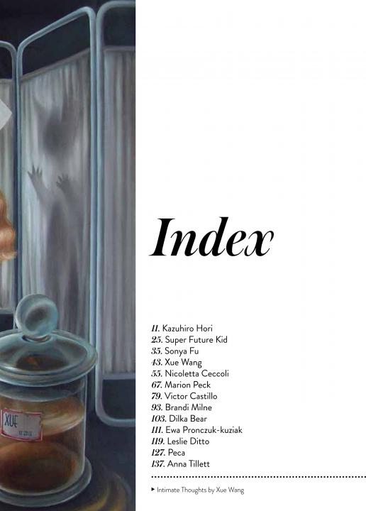 In the following pages you will find fantastic works that will make you feel something sweet and bizarre at the same time, artists like Kazuhiro Hori, Xue Wang, Nicoletta Ceccoli, Marion Peck, Brandi Milne and Dilka Bear.