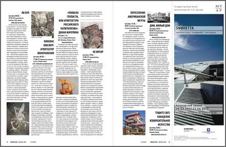 Первый номер 2012 года неожиданно демонстрирует соответствие обложки содержанию: процесс переработки отходов и возвращения их в том или ином виде в круговорот вещества в природе оказывается удивительно созвучным механизму функционирования архитектуры, превращающей груду камней, бассейн цемента, стекло и металл в произведения искусства. Эту возможность подтверждают австриец Томас Пухер (рубрика PORTFOLIO), американец Кевин Рош (в материале Владимира Белоголовского в рубрике NAME ART), китайское бюро MAD (с вполне сумасшедшим музеем в Ордосе) и испанцы VAUMM (кулинарный университет в Испании). Замыкают этот отряд Марта Шварц – ландшафтный дизайнер, на счету которой, пожалуй, самые интересные проекты микросред по всему миру, а также Том Прайс, который из обмылков, огрызков и обрывков делает яркие жизнеутверждающие кресла в духе братьев Кампана.